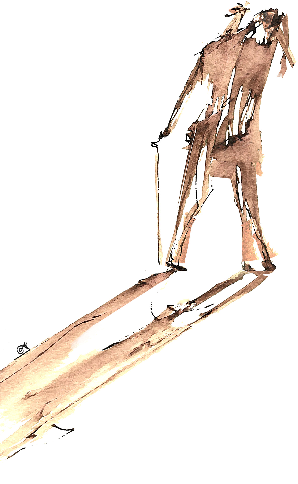 Cu brațul pe care nu-l folosea ca să-l ajute pe băiat să se ridice în picioare, bătrânul a scos un baston de lemn îndoit la un capăt și învelit în alamă lucioasă la celălalt. Băiatului i se părea că bastonul a apărut ca din senin.