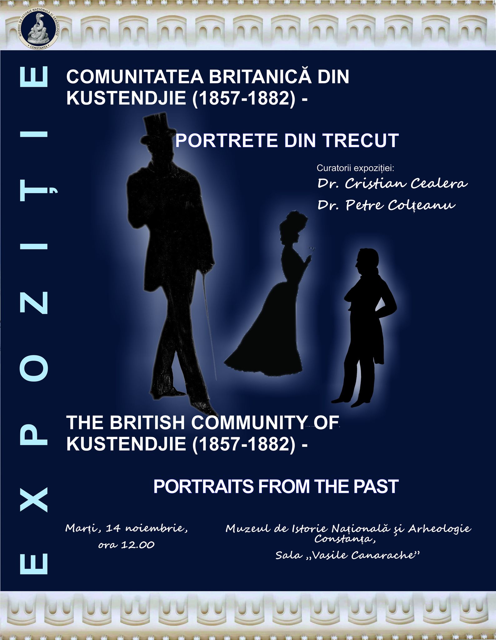 Expoziția foto-documentară „Comunitatea britanică din Kustendjie (1857-1882) – Portrete din trecut”/ „The British Community of Kustendjie (1857-1882) – Portraits from the Past”, curatoriată de dr. Cristian Cealera și dr. Petre Colțeanu, se va deschide chiar de Ziua Dobrogei, marți, 14 noiembrie, de la ora 12.00, în sala „Vasile Canarache”, situată la parterul muzeului.