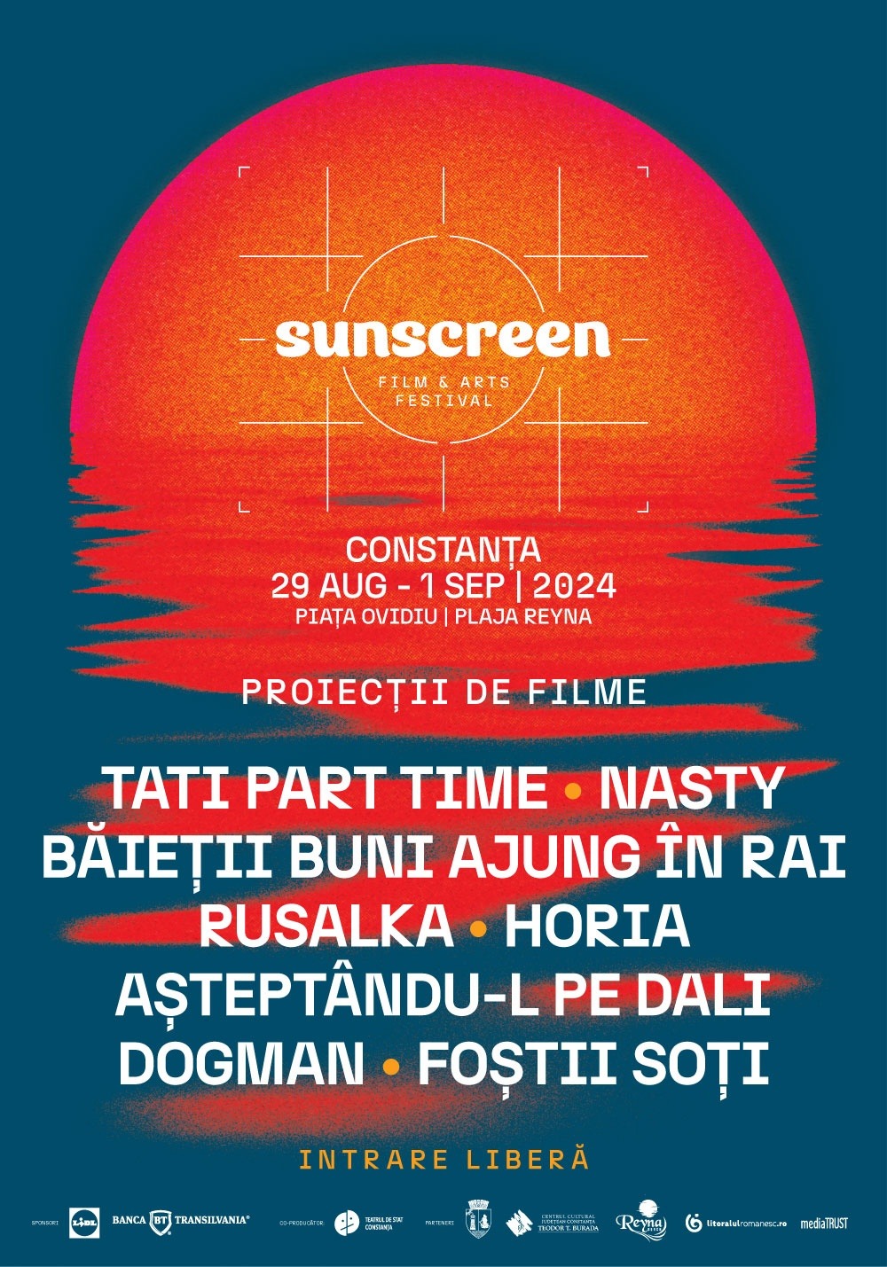 Cea de-a treia ediție a Sunscreen Film & Arts Festival se desfășoară la Constanța în weekendul 29 august – 1 septembrie. Proiecțiile de filme vor avea loc în Piața Ovidiu și pe Plaja Reyna, iar vizionarea este gratuită.