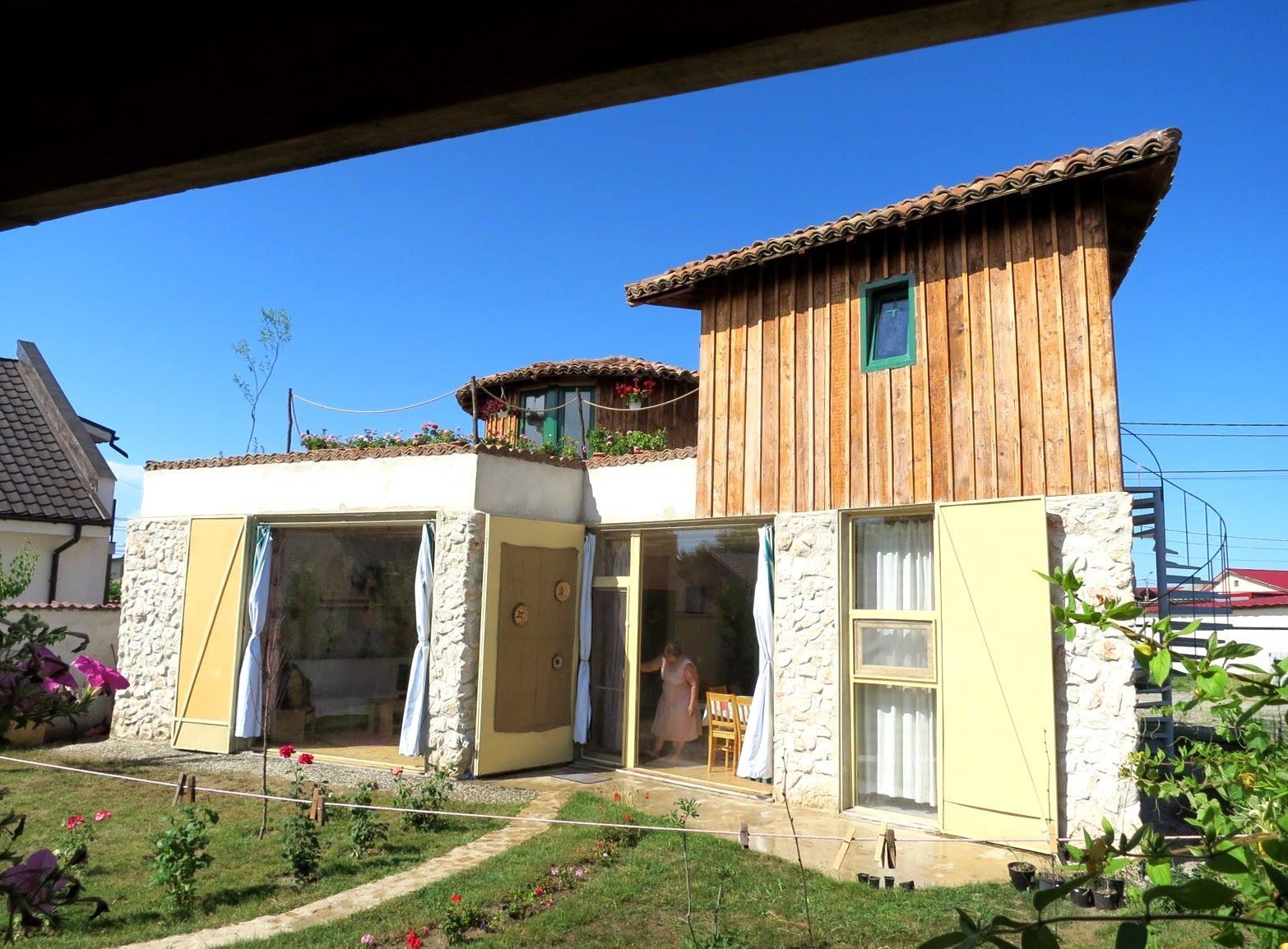 La interior, arhitectul face în așa fel încât ca zidul de piatră exterior să se ivească și în spațiile încăperilor parterul. Planul nivelului de pe sol este conformat de două direcții perpendiculare, iar intersecția acestora este marcată prin dormitorul circular (ce corespunde exact celui de le etaj deja descris). Acest spațiu învăluit de o „fenomenologie a rotundului” (Gaston Bachelard) înseamnă de fapt o articulație, este un fel de „balama” a casei, care pare a primi astfel o orientare caracteristică timpurilor apuse. În preajma acestui veritabil centru al casei găsim așezată soba de teracotă, ca o situare simbolică a elementului focului în proximitatea axis-ului micului univers domestic. Ca o paranteză ușor umoristică, dar foarte sugestivă, un detaliu – să îi spunem totuși mitic – din biografia casei, este faptul că, în timpul șantierului, vecinii și-au închipuit că la sfârșit vor avea în față un nou lăcaș de cult. Da, frumusețea acestei locuințe rezultă din detașarea curajoasă de tendința imitativă a planului și formei alungite specifică casei rurale dobrogene și aflarea unor surse de emulare ce sunt în fond tot tradiționale, dar care, printr-o interpretare proprie – chiar dacă presupune parțial și colajul tipic modernității – emană originalitate și mai ales caracter. „Poeții ctitoresc”, după cum spunea romanticul Hölderlin, dar, la urma urmei, dorința ascunsă a arhitecților rămâne aceea de a înălța la rândul lor crâmpeie zidite de poezie, originea – dar și finalitatea – oricărei opere de artă.