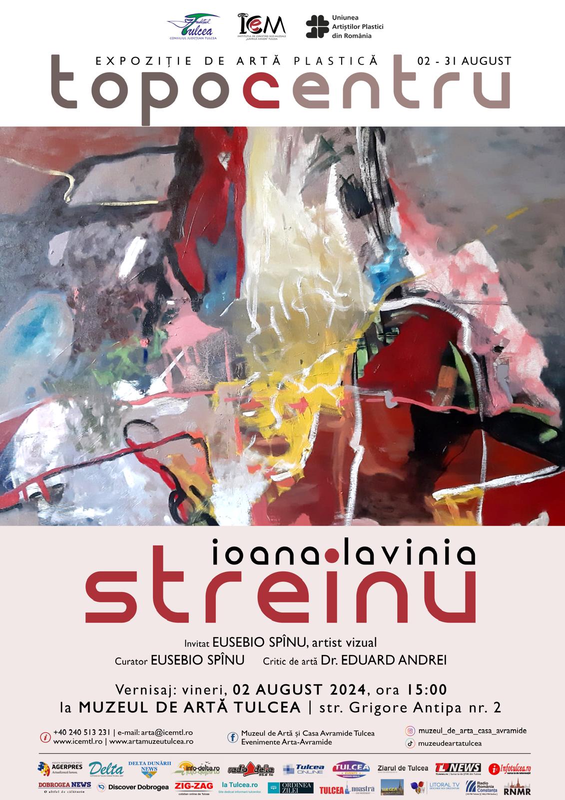 Topocentru, titlul actualei expoziții personale a Ioanei Lavinia Streinu, combină inspirat doi termeni: grecescul τόπος / tópos, semnificând la origine model al tradiției culturale (idee, temă, motiv) preluat de un scriitor care îi dă noi înțelesuri, așadar loc comun într-o creație literară, pentru ca ulterior să fie asociat doar cu loc (în accepție geografică), și latinescul centrum, care în română a dat, desigur, substantivul centru. Mircea Eliade spunea că, potrivit filozofiei socratice și, mai înainte, celei indiene, salvarea omului stă în capacitatea sa de a-și aminti sau de a recunoaște adevărul – adevăr care se află în el și constituie chiar centrul său. Ca urmare, drumul omului spre înțelepciune și spre libertate înseamnă drumul spre centrul ființei sale, care presupune ieșirea din zona profană și intrarea în cea sacră.