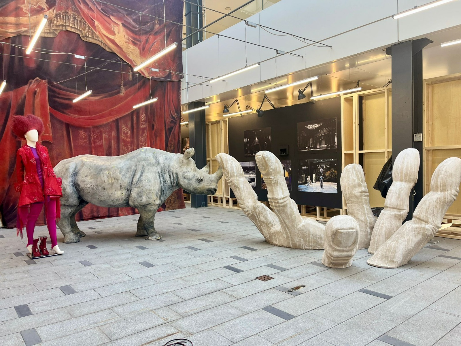 Rinocerul creat de scenograful Helmut Stürmer pentru „Faust” în regia lui Silviu Purcărete, mâinile uriașe create de Cosmin Florea pentru „Pădurea spânzuraților” în regia lui Radu Afrim, imagini din spectacole de Liviu Ciulei sau Lucian Pintilie vor fi expuse în Piața Amzei din București și în foaierele Teatrului Național „Ion Creangă” (TNB), în cadrul Bienalei de Scenografie, renăscută după trei decenii de întrerupere.