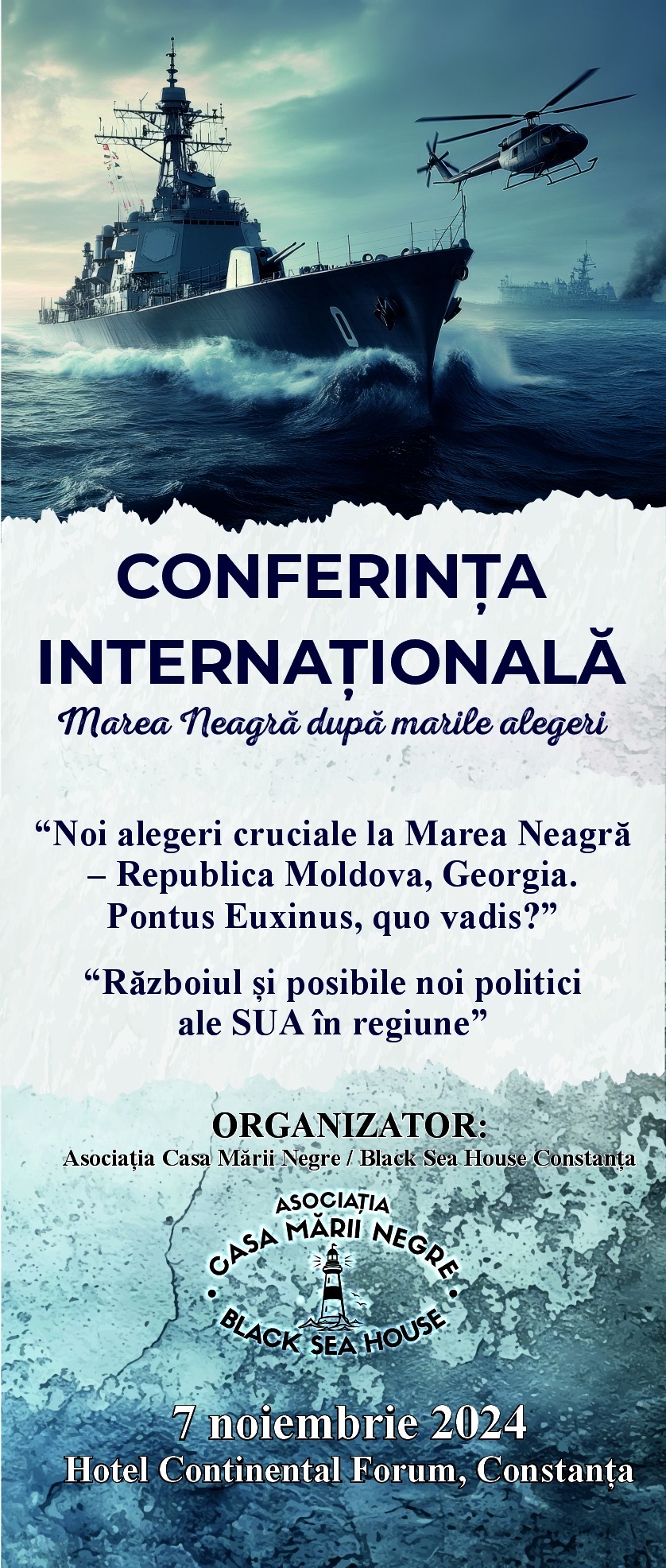 Asociația „Casa Mării Negre” / „Black Sea House” organizează joi, 7 noiembrie, începând cu ora 09.00, la Hotelul Continental Forum, conferința „Marea Neagră după marile alegeri”/ „The Black Sea region after 2024`s pivotal elections”.