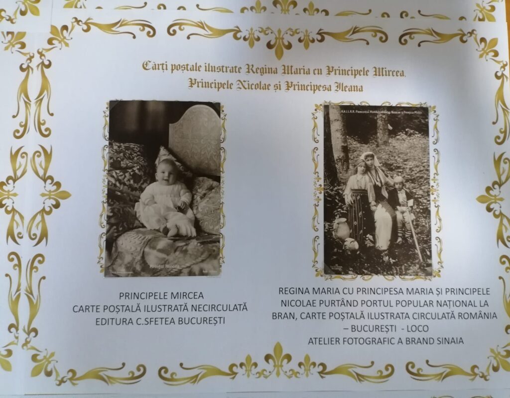 Expoziția reunește fotografii originale vechi, în care apare Regina Maria, alături de Principele Mircea în posturi duioase, imagini în care suverana este înfățișată alături de ceilalți copii ai ei, îmbrăcați în port tradițional românesc, precum și cărți poștale ilustrate, plicuri filatelice, timbre „de ajutor”, invitații la balurile și bazarurile asociației caritabile, medalioane, dar și mărturii de la botezul micuțului principe Mircea, realizate din argint, alamă, alamă aurită sau cupru.