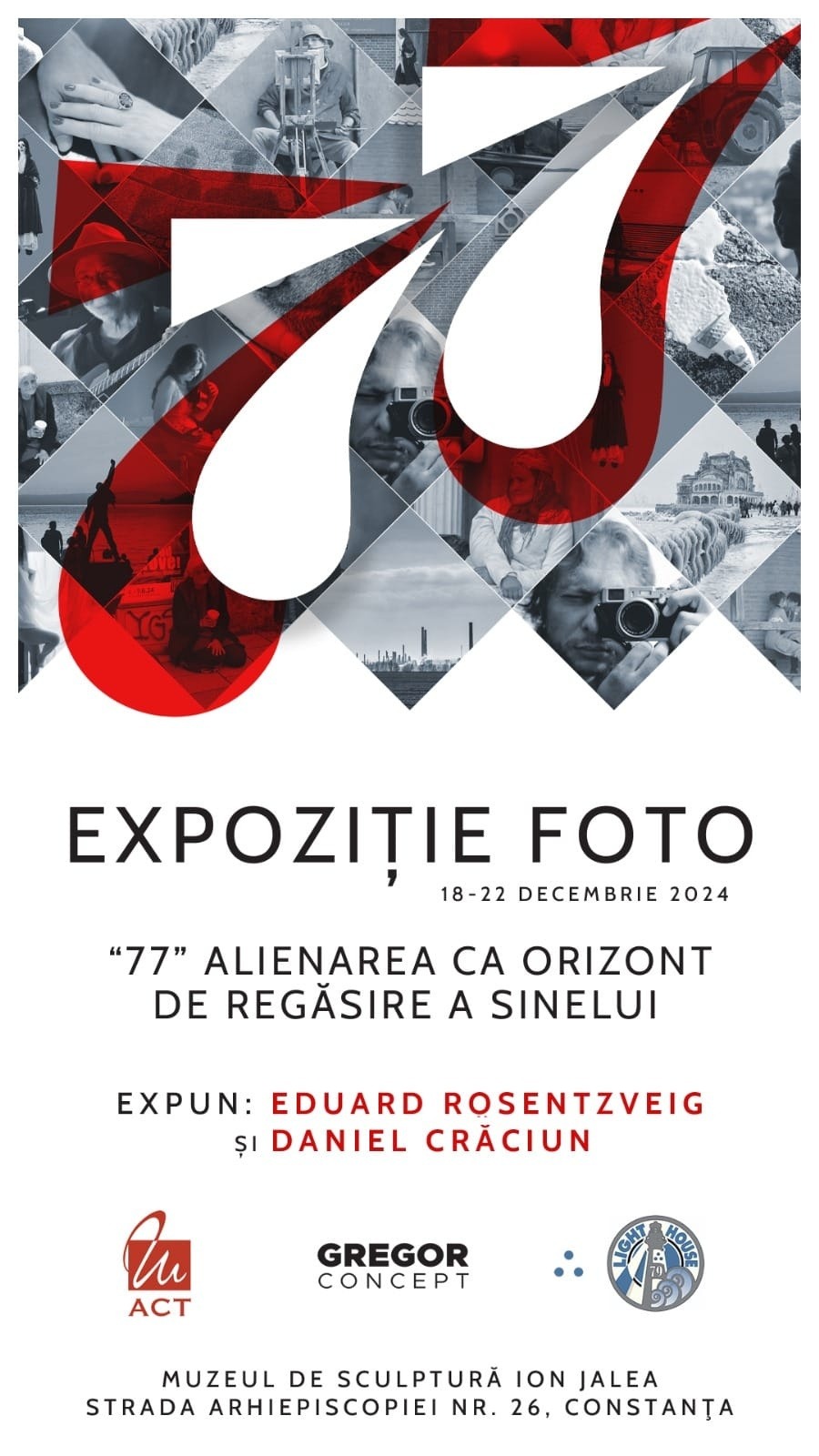 Între 18 și 22 decembrie, la Muzeul de sculptură „Ion Jalea”, va putea fi văzută expoziția de fotografie „77”, semnată de psihologul, fotograful și poetul Eduard Rosentzveig și inginerul pasionat de fotografie Daniel Crăciun.