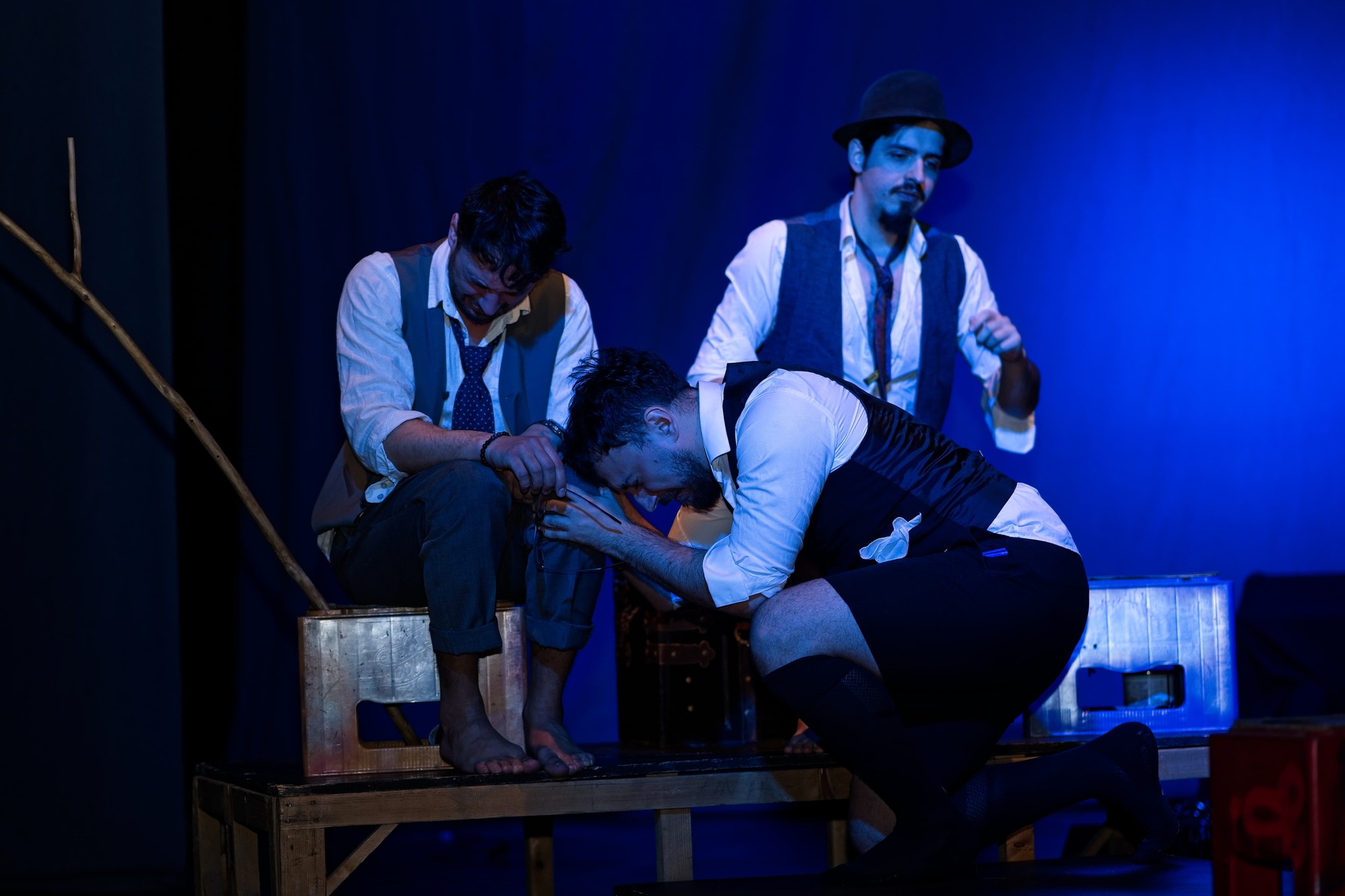 Piesa care are ca punct de inspirație acest spectacol, „În largul mării”, de Slawomir Mrozek, este, după cum menționează organizatorii, „o parabolă politică plină de umor. Deși scrisă în plină cenzură, piesa este de o actualitate neliniștitoare și pare decupată din titlurile de presă ale prezentului. La adăpostului umorului, autorul urmărește povestea a trei naufragiați înfometași ce se străduiesc să găsească o soluție «democratică» de a decide care dintre ei va fi mâncat de ceilalți doi.