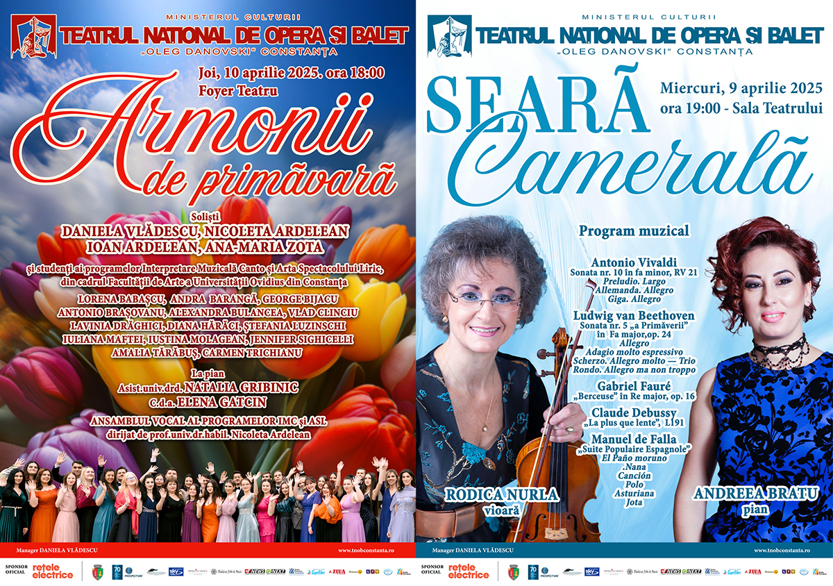 Joi, 10 aprilie, de la ora 18.00, melomanii tomitani sunt așteptați în foaier, să descopere „Armonii de primăvară”, recital care va în prim-plan soliști îndrăgiți, precum: Daniela Vlădescu, Nicoleta Ardelean, Ioan Ardelean, Ana-Maria Zota și studenți ai programelor Interpretare Muzicală Canto și Arta Spectacolului Liric, din cadrul Facultății de Arte a Universității „Ovidius” din Constanța.