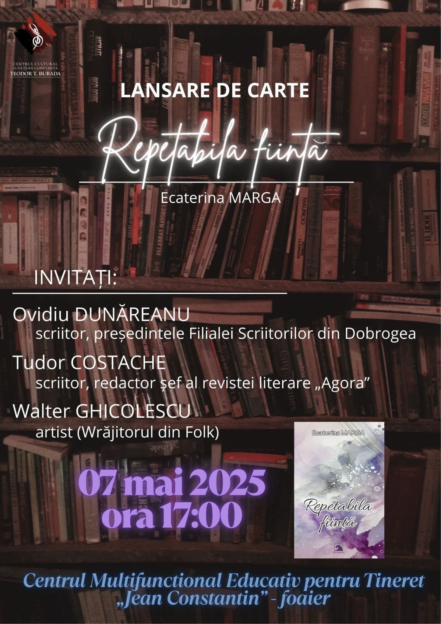 Lansarea cărții este programată miercuri, 7 mai, de la ora 17.00, în foaierul Centrului Multifuncțional Educativ pentru Tineret „Jean Constantin”.