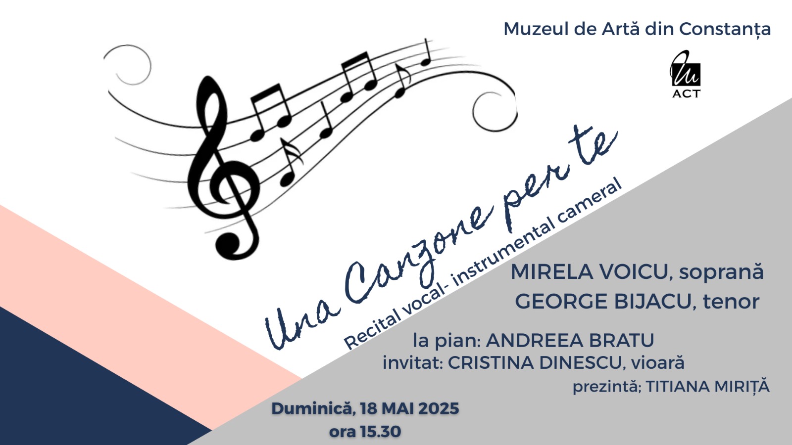 „Una Canzone per Te” este titlul recitalului cameral vocal-instrumental care va avea loc la Muzeul de Artă Constanța duminică, 18 mai, începând cu ora 15.30.