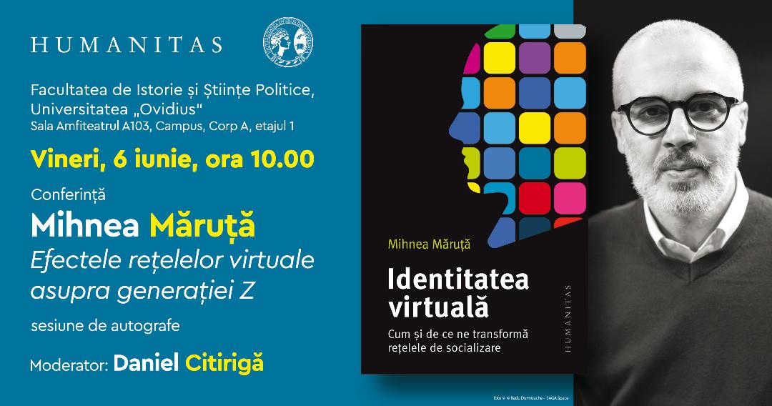 Vineri, 6 iunie, de la ora 10:00, Facultatea de Istorie și Științe Politice a Universității „Ovidius” din Constanța (UOC) organizează în campus o conferință ce va fi susținută de jurnalistul și scriitorul Mihnea Măruță, conferință intitulată Efectele rețelelor virtuale asupra generației Z.