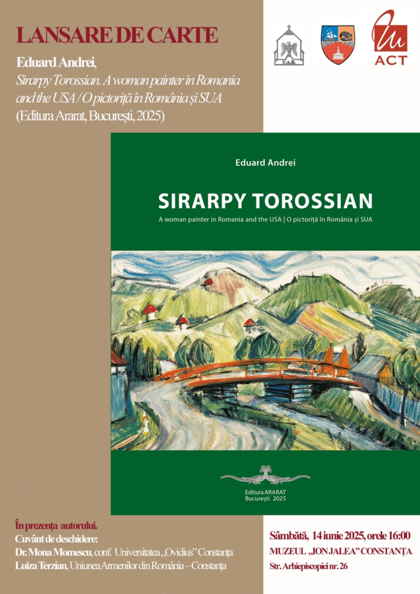 Apreciatul critic și istoric de artă Eduard Andrei lansează sâmbătă, 14 iunie, de la ora 16.00, la Muzeul „Ion Jalea” din Constanța, volumul „Sirarpy Torossian. A woman painter in Romania and the USA / O pictoriță în România și SUA”, prima monografie dedicată acestei artiste de origine armeană născută la Mangalia în urmă cu peste un secol.