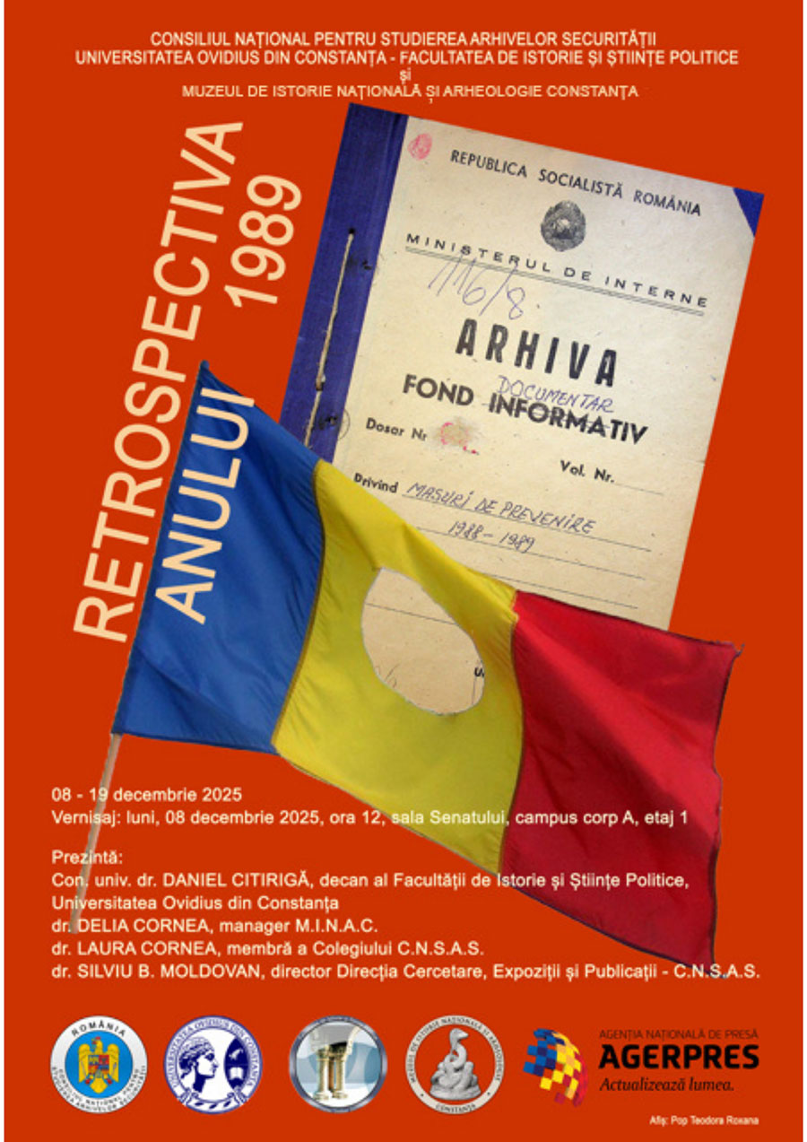 Expoziția documentară „Retrospectiva anului 1989”, dedicată marcării a 36 de ani de la căderea regimului comunist din România va fi deschisă luni,  8 decembrie 2025, la ora 12:00, la Universitatea Ovidius, în Sala Senatului (campus, corp A, etaj 1). Evenimentul este organizat de Consiliul Național pentru Studierea Arhivelor Securității (CNSAS), în parteneriat cu Universitatea Ovidius din Constanța – Facultatea de Istorie și Științe Politice și Muzeul de Istorie Naționala și Arheologie Constanța (MINAC), și cu sprijinul AGERPRES.