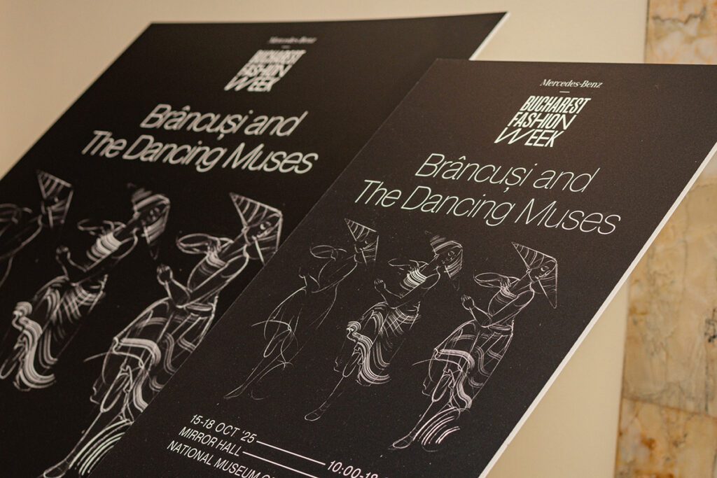Anticipând Anul Brâncuși 2026, care marchează 150 ani de la nașterea marelui sculptor, Institutul Național al Patrimoniului a lansat la Muzeul Național de Artă al României, în cadrul Mercedes-Benz Bucharest Fashion Week (15-18 octombrie 2025), expoziția Brâncuși și Muzele Dansului, care a constituit un prilej de dialog despre moștenirea artistică a lui Constantin Brâncuși și legătura dintre patrimoniu, artă și modă. Tema expoziției s-a aliniat perfect cu cea a concursului NEXT GENERATION – Fashion Talent Award din cadrul MBBFW, “Cultural Heritage in Fashion: A Bridge between Tradition and Innovation”, context în care am putut aduce în fața publicului tânăr o latură mai puțin cunoscută a creației brâncușiene, celebrând dialogul atemporal dintre tradiție și inovație.