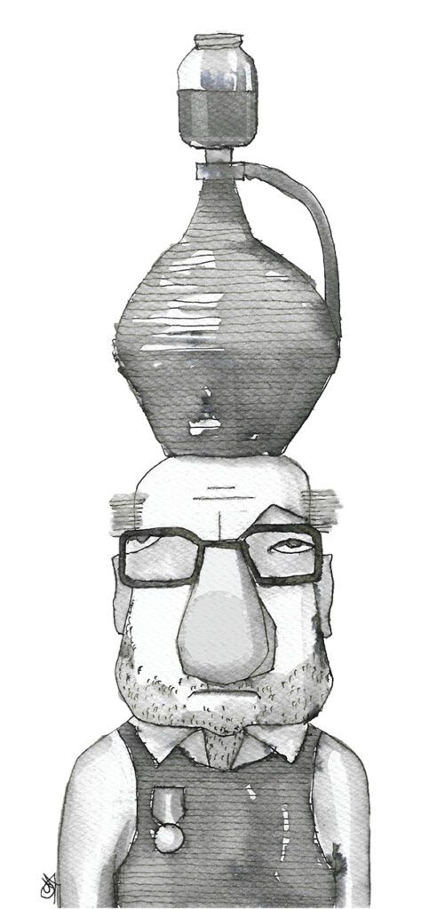 Mihai îi ia borcanul gol și-i mai toarnă vin din damigeană.