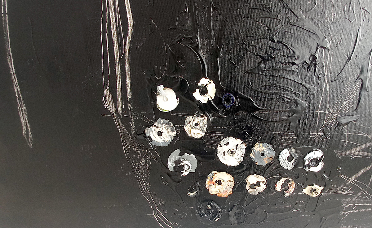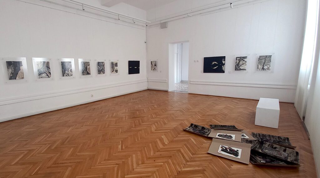 Seria Unpacked prints (imprimări despachetate) folosește ca suport chiar cartoane de ambalaj, cu acele striații specifice, ca referință directă la funcția de împachetare, peste care sunt lipite coli pictate cu elemente amorfe sau geometrizate. În seria Undefined (nedefinit), câte un fragment textil colat creează centrul de interes compozițional prin propria lumina caldă, în timp ce alte două picturi în acrilic, ambele intitulate New White (noul alb), conțin câteva mici elemente luminoase, circulare sau prismatice, rezultate, de data aceasta, din albul cald al pânzei suport, rămasă neatinsă de pensulă, restul fiind acoperit integral de negru. Lucrările din seria Unpacked Signs (semne despachetate), care domină în ultimele două săli, apar ca schițe spontane pe hârtie, cu diverse structuri, preponderent angulare, prezentate elegant sub folii de plexiglas.