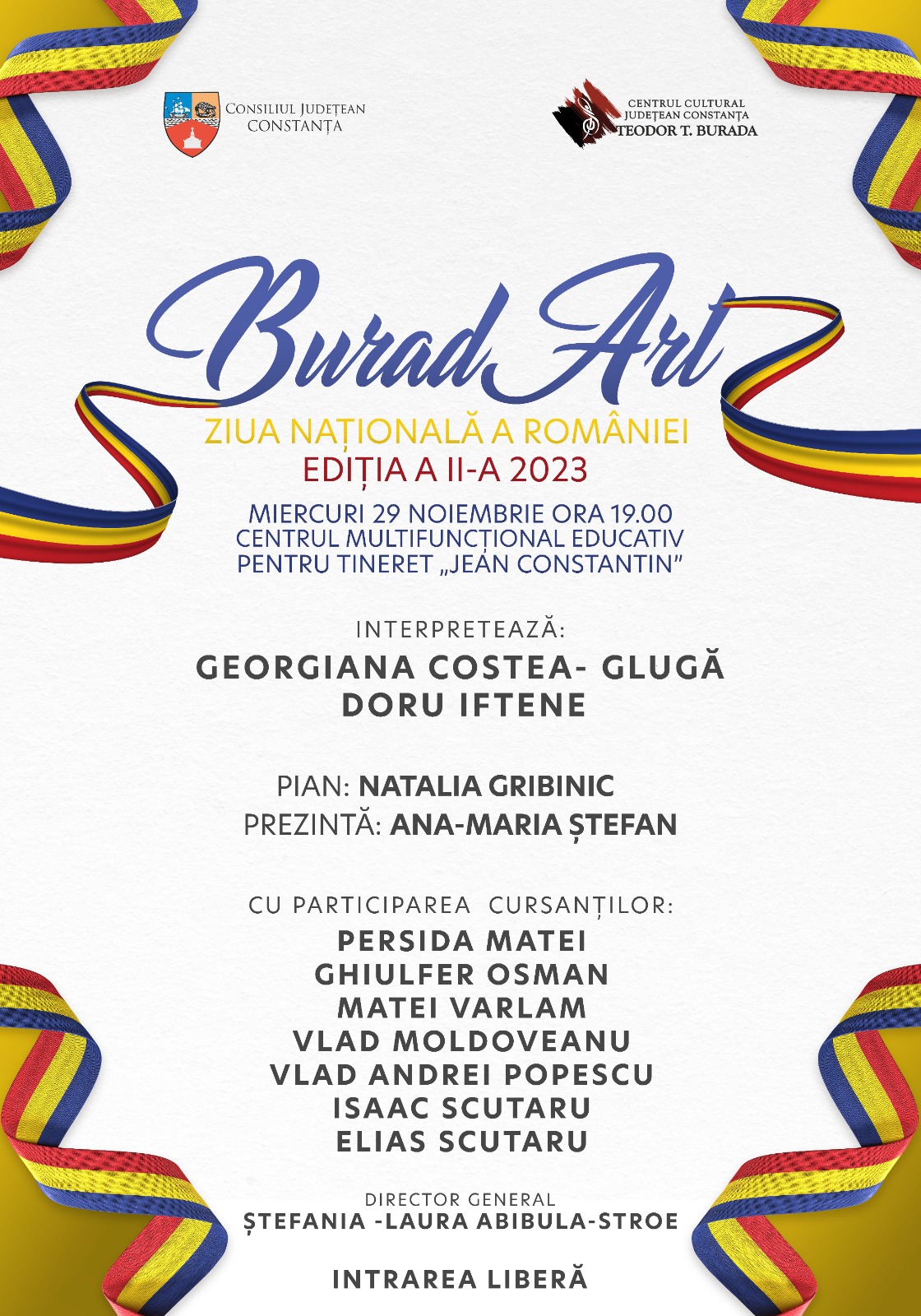 Pentru al doilea an consecutiv, Centrul Cultural Județean Constanța „Teodor T. Burada” organizează evenimentul muzical „BuradArt – Ziua Națională a României”.